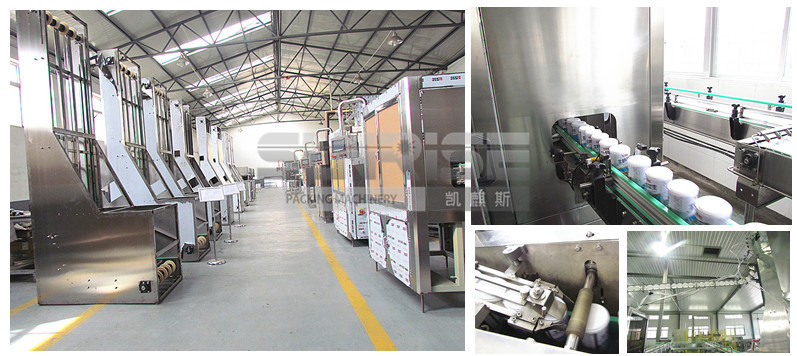 C.壓蓋機(jī)優(yōu)點(diǎn)及比較 1.本機(jī)理蓋器采用方管做機(jī)體骨架,其機(jī)體更加穩(wěn)固牢靠。(其他公司為一體式,穩(wěn)固性略差) 2.由于螺旋分罐器直徑較大,增加了罐體與螺旋分罐器接觸面積,從而保證分罐時(shí)不倒罐,分罐性能更加穩(wěn)定。(螺旋分罐器體積比其他廠家大出好多) 3.理蓋機(jī)中蓋提升機(jī)上端安裝有機(jī)透明玻璃,正常生產(chǎn)能時(shí)可觀察其運(yùn)行狀況(是否掉勺),了解其工作原理,使檢修維護(hù)更加方便。 4.本機(jī)主機(jī)輸送傳輸采用皮帶形式,皮帶容易拆卸,檢修維護(hù)方便。(我司為一側(cè)安裝式,便于后維修調(diào)整,其他廠家為兩側(cè)安裝式) 5.理蓋機(jī)中蓋提升鏈網(wǎng)凸起部分和鏈網(wǎng)是注塑成型一體,凸起部分不容易脫落,從而鏈網(wǎng)提升蓋子更加穩(wěn)定。(其他廠家為分體) 6.本機(jī)主機(jī)輸送皮帶部分,安裝有定制的高強(qiáng)磁鐵,磁性較強(qiáng),從而使皮帶輸送罐體更加穩(wěn)定,罐體定位更加***。(磁鐵強(qiáng)度更大) 7.本機(jī)主機(jī)傳動(dòng)鏈條加有漲緊裝置,調(diào)整鏈條更加簡(jiǎn)單方便,而漲緊裝置可確保鏈條松緊度保持一致,所以其傳動(dòng)效果良好,性能穩(wěn)定。 8.本機(jī)壓蓋部分傳動(dòng)軸與理蓋部分傳動(dòng)軸均采用SUS304不銹鋼材質(zhì)。傳動(dòng)齒輪、鏈輪均采用高頻淬火處理,強(qiáng)度高,使用壽命長(zhǎng)。 9.本機(jī)與罐體接觸部位采用超高分子聚乙烯、含油尼龍、橡膠等材質(zhì),可有效保證罐體表面無(wú)劃痕。 10.本機(jī)外觀部分95%以上均采用SUS304不銹鋼材質(zhì)。裝配所使用螺栓、螺釘、墊圈等標(biāo)準(zhǔn)件均為SUS304不銹鋼材質(zhì)。 11.電氣控制主要元器件均采用國(guó)內(nèi)外***品牌。PLC可編程控制器為德國(guó)西門子公司產(chǎn)品,變頻器為丹麥丹弗斯公司產(chǎn)品。其余電氣元器件均采用各知名品牌。整體電氣配置質(zhì)量上乘,性能優(yōu)越,穩(wěn)定可靠。 D.配件品牌 1.PLC:德國(guó)西門子(Siemens ) 2.電機(jī)減速機(jī):萬(wàn)聯(lián) 3.傳感器:施克(SICK)韓國(guó)奧托尼克斯(autonics) 4.輸送鏈網(wǎng):DMM 5.觸摸屏:臺(tái)灣維綸(weinview)