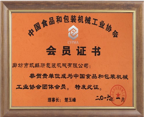 - 我公司正式加入中國(guó)食品和包裝機(jī)械工業(yè)協(xié)會(huì)